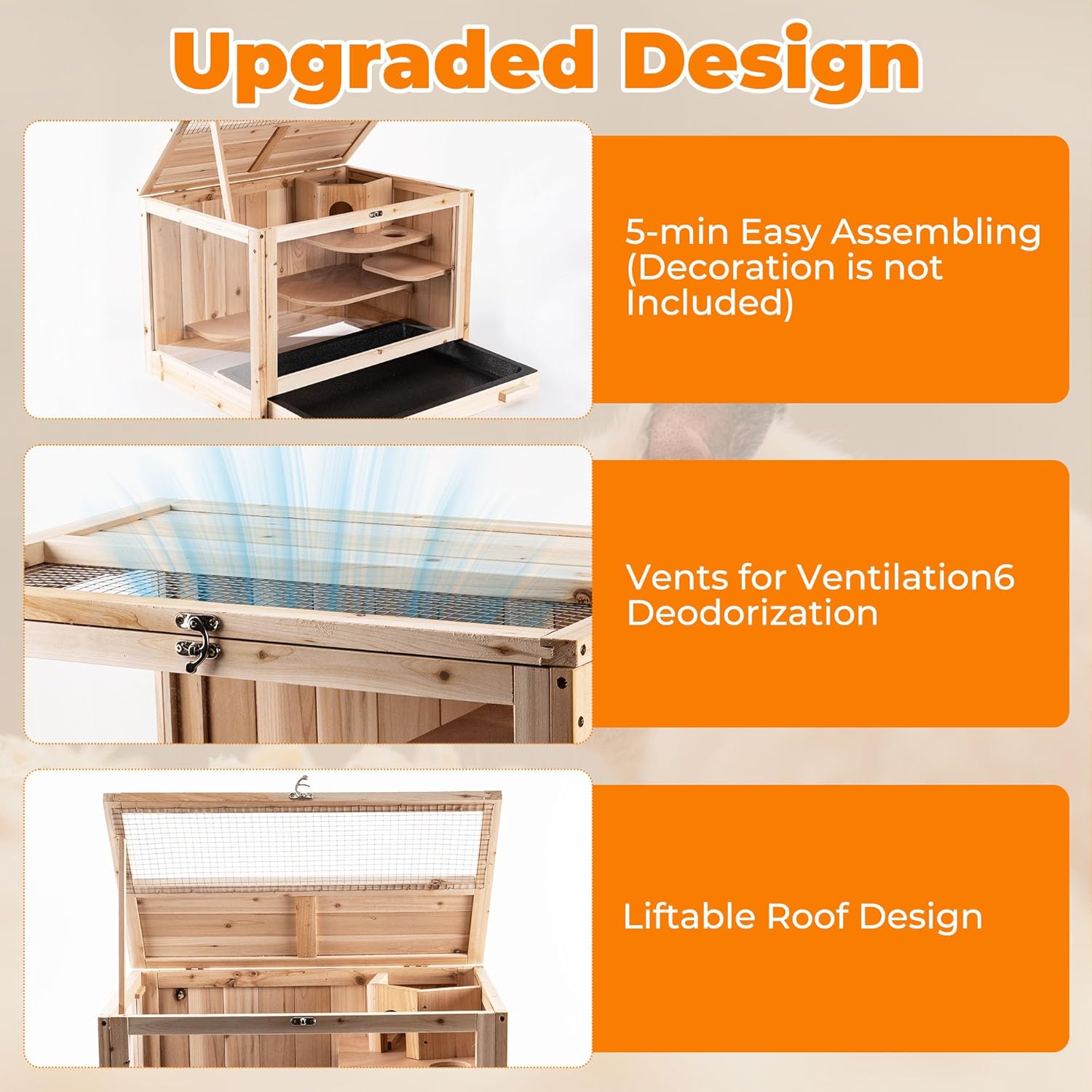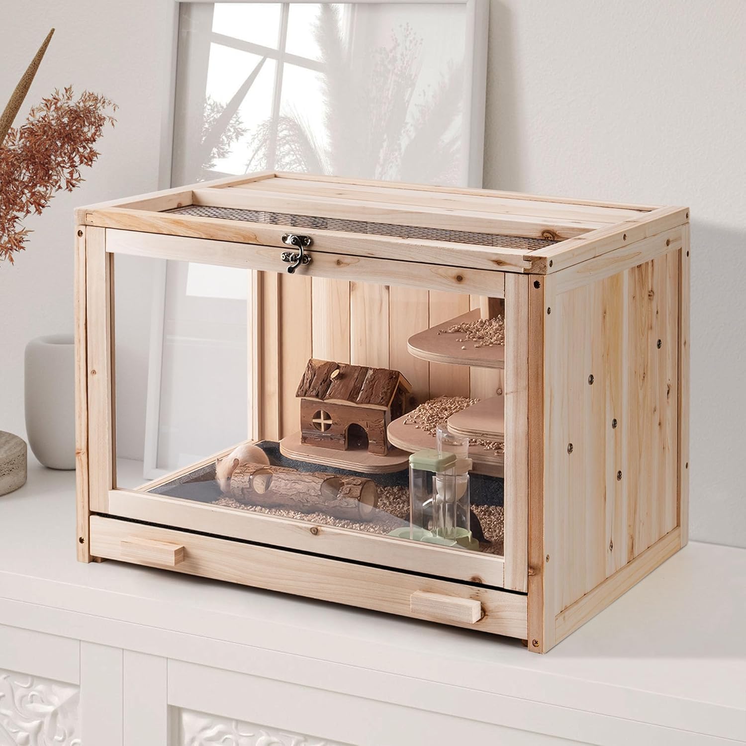 Wooden Hamster Cage, Animal Cabinet for Dwarf Syrian Hamsters Transparent Hamster Cage, Small Animal Cage, Suitable Guinea Pig,Rodents, Hamster Habitats Enclosure, Habitats with Ladder