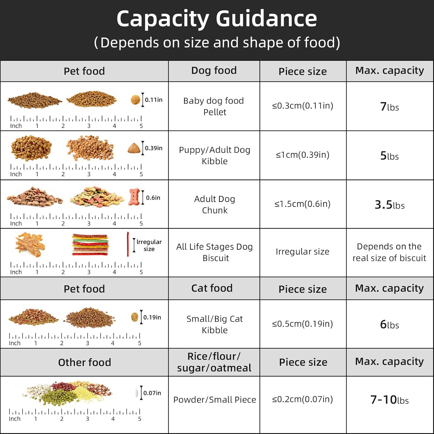 - WHAT YOU GET?:The small dog food bin comes with a 1-pack airtight pet food storage container with a clear measuring cup and an upgraded large spout for easy pouring of pet food at any time. This dog food storage containers can be a gift The perfect gift for any home.