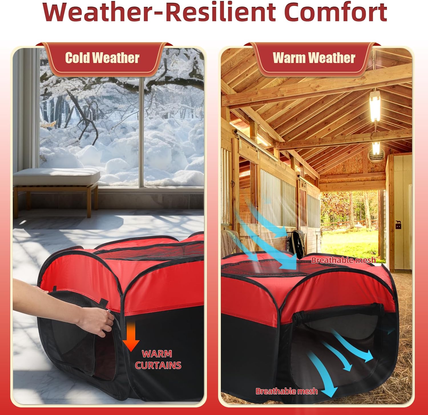 - [Weather-Resilient Comfort] - The insulated curtains and top cover provide excellent winter protection, keeping your chicks warm in cold weather. During warmer months, simply open the breathable mesh panels for optimal airflow - maintaining a cool, comfortable summer environment while securely containing your chicks.No matter the season, this coop heater brooder ensures your chicks stay safe, content, and perfectly comfortable in all weather conditions!