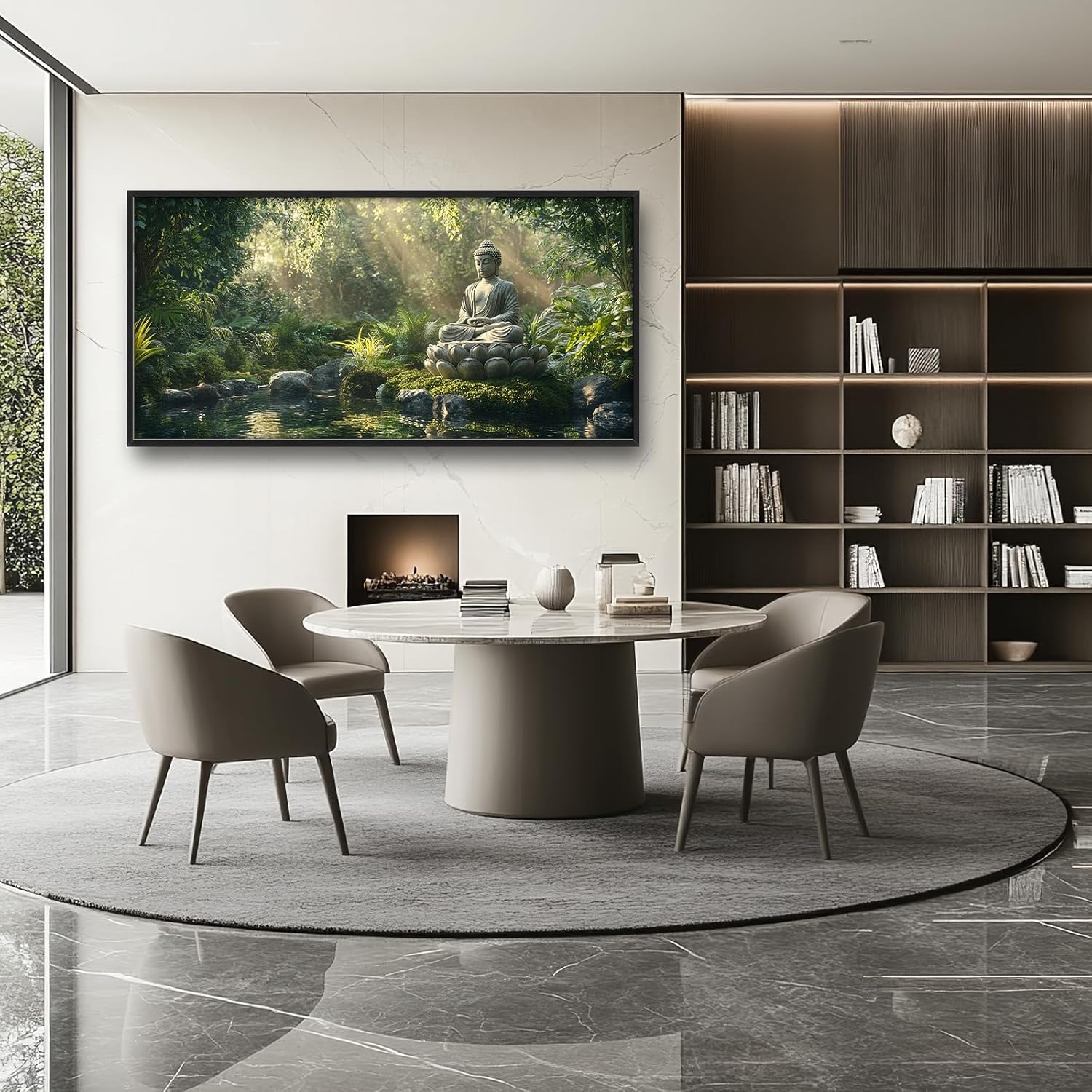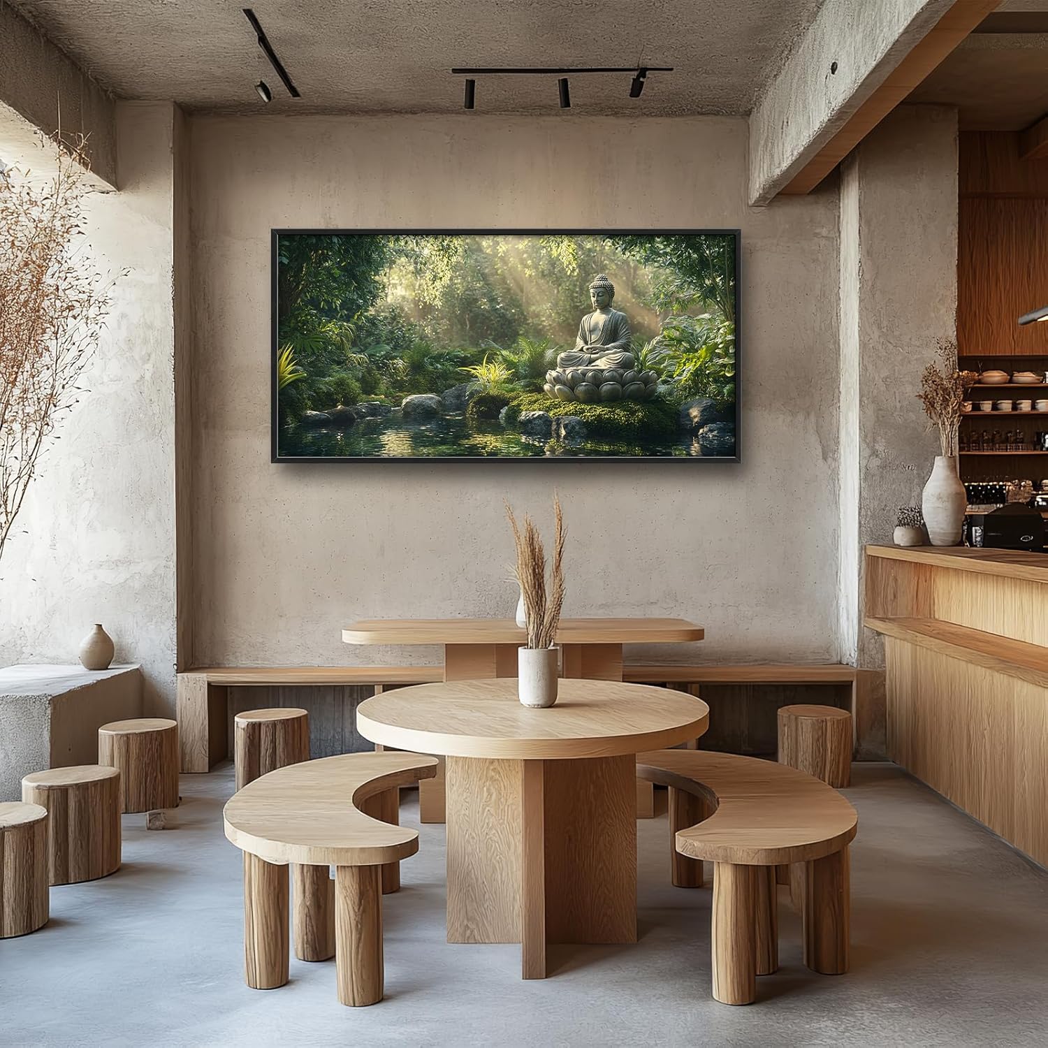 Large Buddha Forest Wall Art for Living Room, Framed Oversized Tree Lake Wall Decor, Nature Landscape Canvas Painting Modern Artwork Home Decoration for Dining Room Bedroom Office 60"x30"