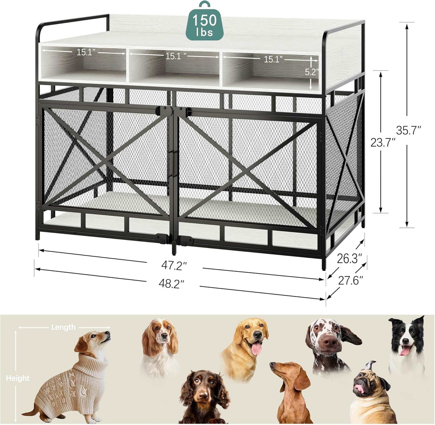 - Spacious & Secure Dog Crate for Large Dogs: The extra large dog crate has generous dimensions of 48"L x 28"W x 36"H. Ideal for one large dog or two smaller dogs, this large dog kennel furniture indoor ensures ample space for them to stretch out comfortably. Before purchase, be sure to measure your dog to guarantee they have enough room to move around, lay down, and sleep comfortably, so this wooden dog crate is perfect for this purpose.