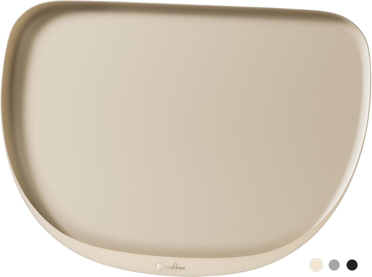 DownyPaws Dog Food Mats for Floors Waterproof, BPA Free Silcone Dog Bowl Mat, Non-Slip Pet Feeding Mat with High Raised Edge, Cat Placemat for Messy Drinkers, 18"×12.5", Almond