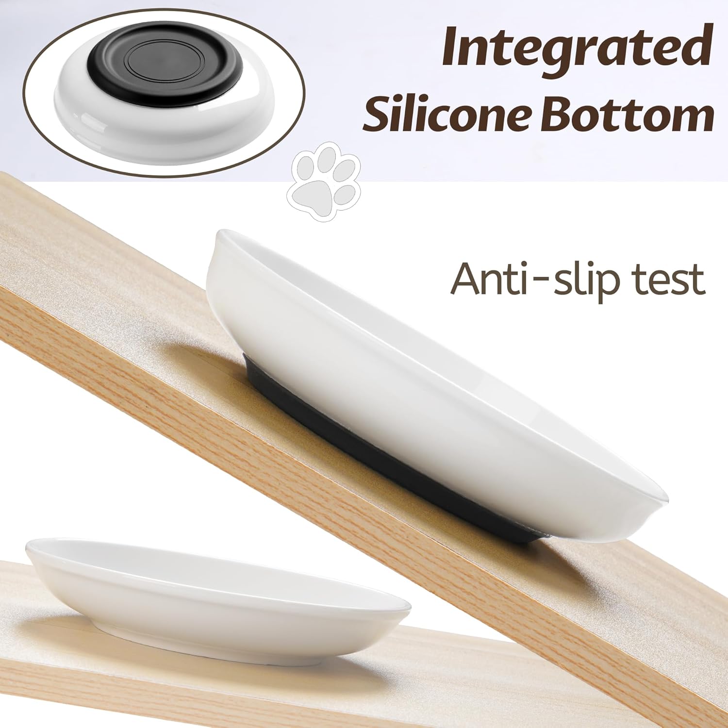 No Spill Cat Bowls,Cat Food Bowl,Anti Whisker Fatigue Healthy Ceramic Cats Dishes Set for Indoor Cats,Shallow Wide Kitten Plates for Food and Water,Non-Slip Silicone Bottom,6 Pack
