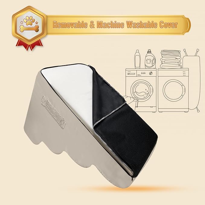 - Easy to Clean and Maintain - The washable cover of our pet stairs is removable and easy to clean, and the zipper design allows for convenient hand washing or machine washing. Please note that the foam core should not be machine washed or dried.