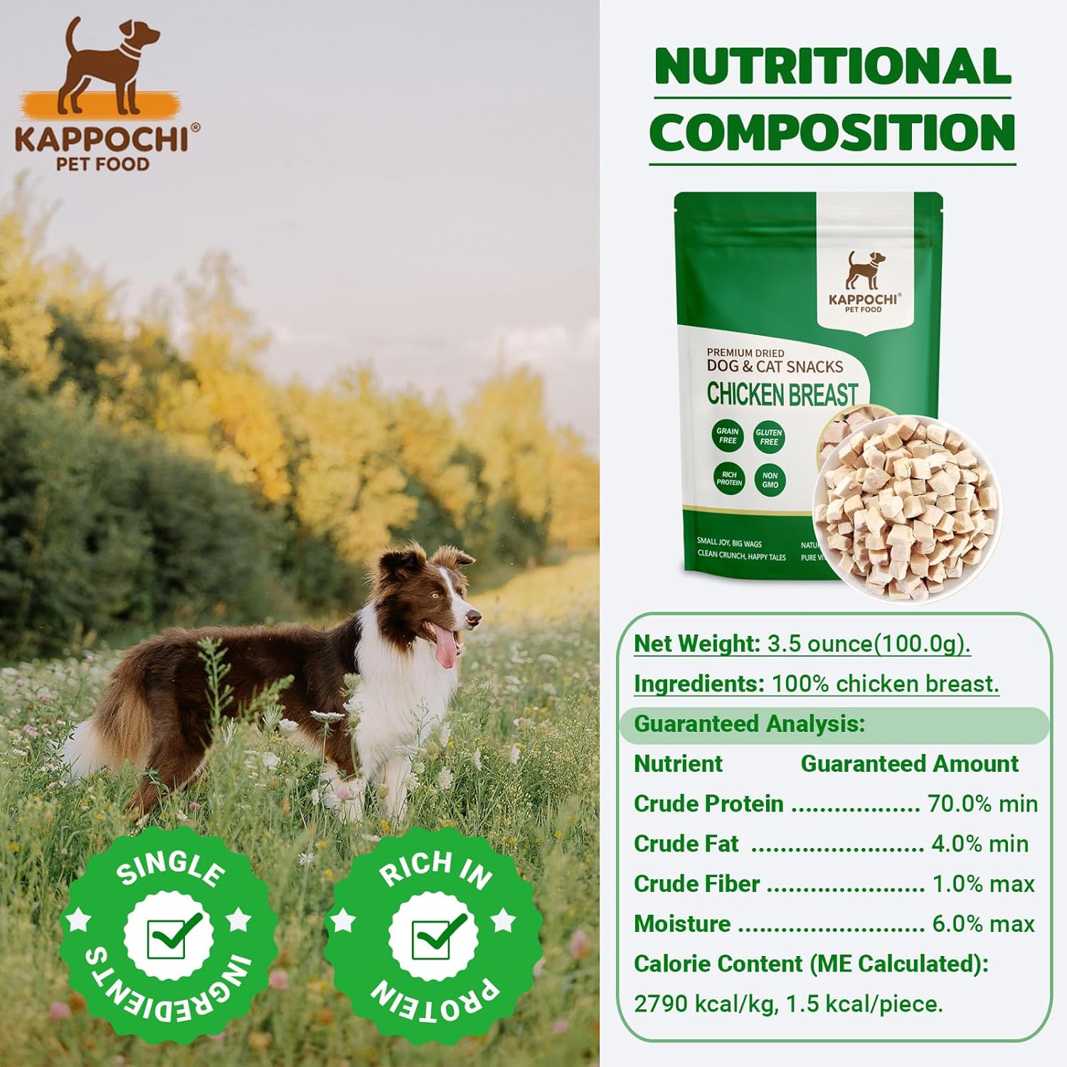 Freeze-Dried Chicken Breast Dog Treats, 3.5oz(100.0g), 100% Single Ingredient, Low Fat, High Protein Training Treats, Natural & Raw, No Additives, Grain Free, Gluten Free
