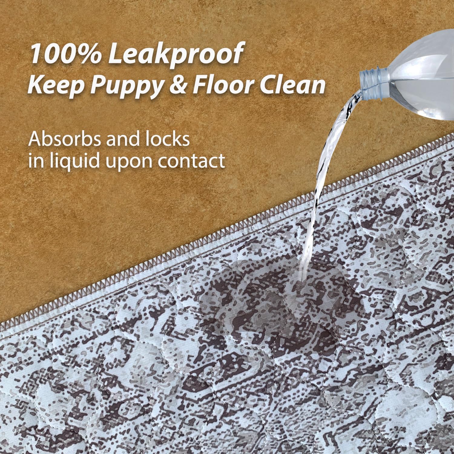 nunubaby Washable Pee Pads for Dogs, Stylish, Non-Slip and Leak-Proof Pee Pads. Reusable Potty Pads for Dogs for Crates and Floors.(Brown/Geo, 54" x54")