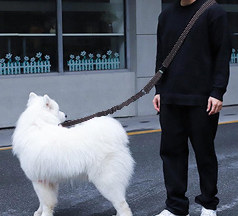 - Bungee Dog Leash: This heavy duty bungee dog leash is perfect for active dogs. Bungees design help to absorb shock from dogs, reduce back strain and the risk of getting hurt. Our waist leash is 57 inch and extends up to 90 inch, your dog can comfortably run in front of you. And the dog leashes for large dogs heavy duty with short handle, you can use it pull the dog back to safety fastly in case of emergency