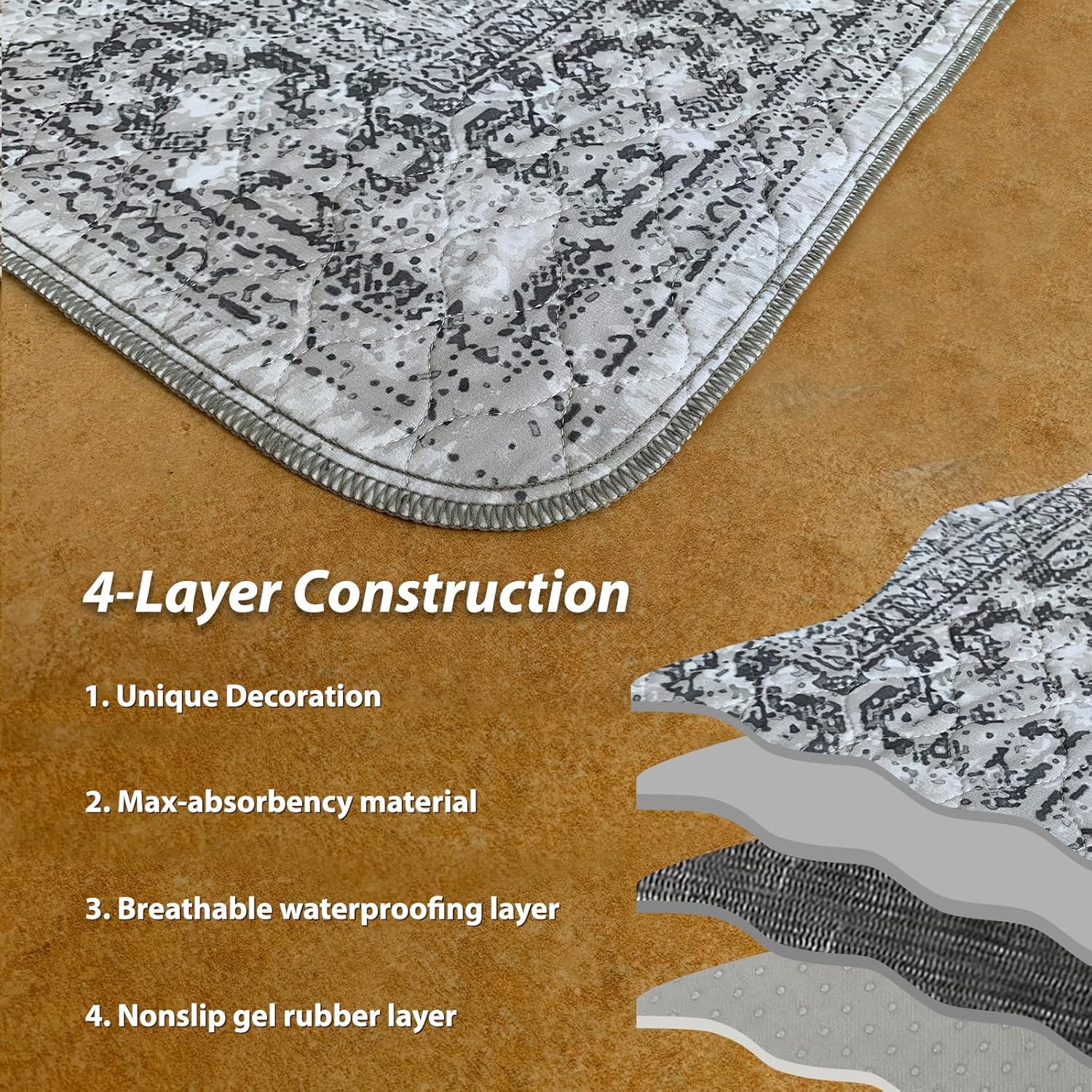 nunubaby Washable Pee Pads for Dogs, Stylish, Non-Slip and Leak-Proof Pee Pads. Reusable Potty Pads for Dogs for Crates and Floors.(Gray/Geo, 36" x72")