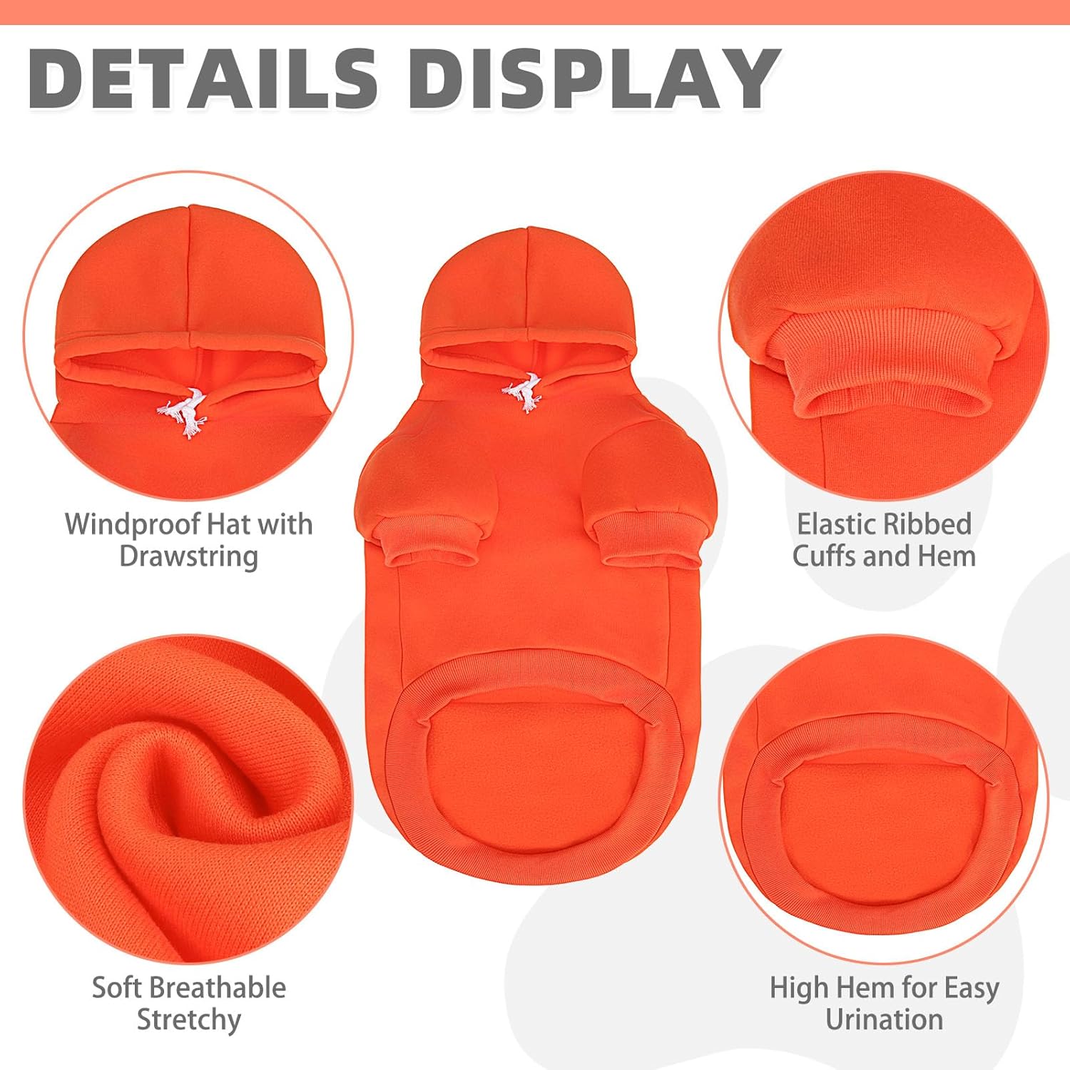 KOOLTAIL Fall Dog Hoodie - Soft & Warm Dog Thanksgiving Sweater with Leash Hole and Pocket, Pet Winter Coat, Cold Weather Clothes Sweatshirt for Small Medium Large Dogs Puppy Cat Boys Girls, Orange XS