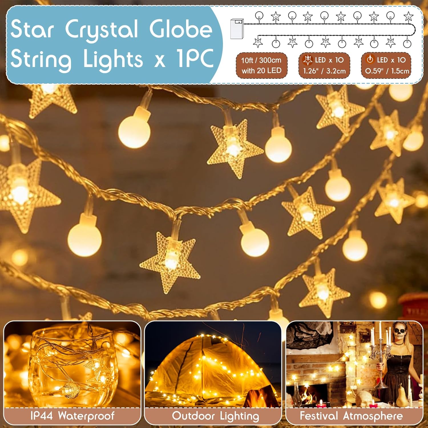 - 🐾【UPGRADED-2 | 10ft/ 3M Star String Light 2-Modes Light Up Teepee Tent Doghouse】Powered by three AA batteries (not included). The battery star lights are low power and insulate heat, remaining safe to the touch. Durable & waterproof plastic construction. The clear and lovey star-shaped LED bulbs will add a safety sence and romantic touch to your pet personal space. Meanwhile, you'll find this string light perfect decoration for your home, garden, Christmas tree, camping outdoor etc.