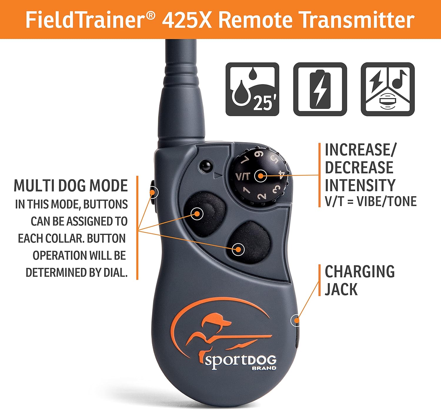 SportDOG Brand FieldTrainer 425X Remote Trainer - 500 Yard Range - Rechargeable Dog Training Collar with Static, Vibrate, and Tone - SD-425X