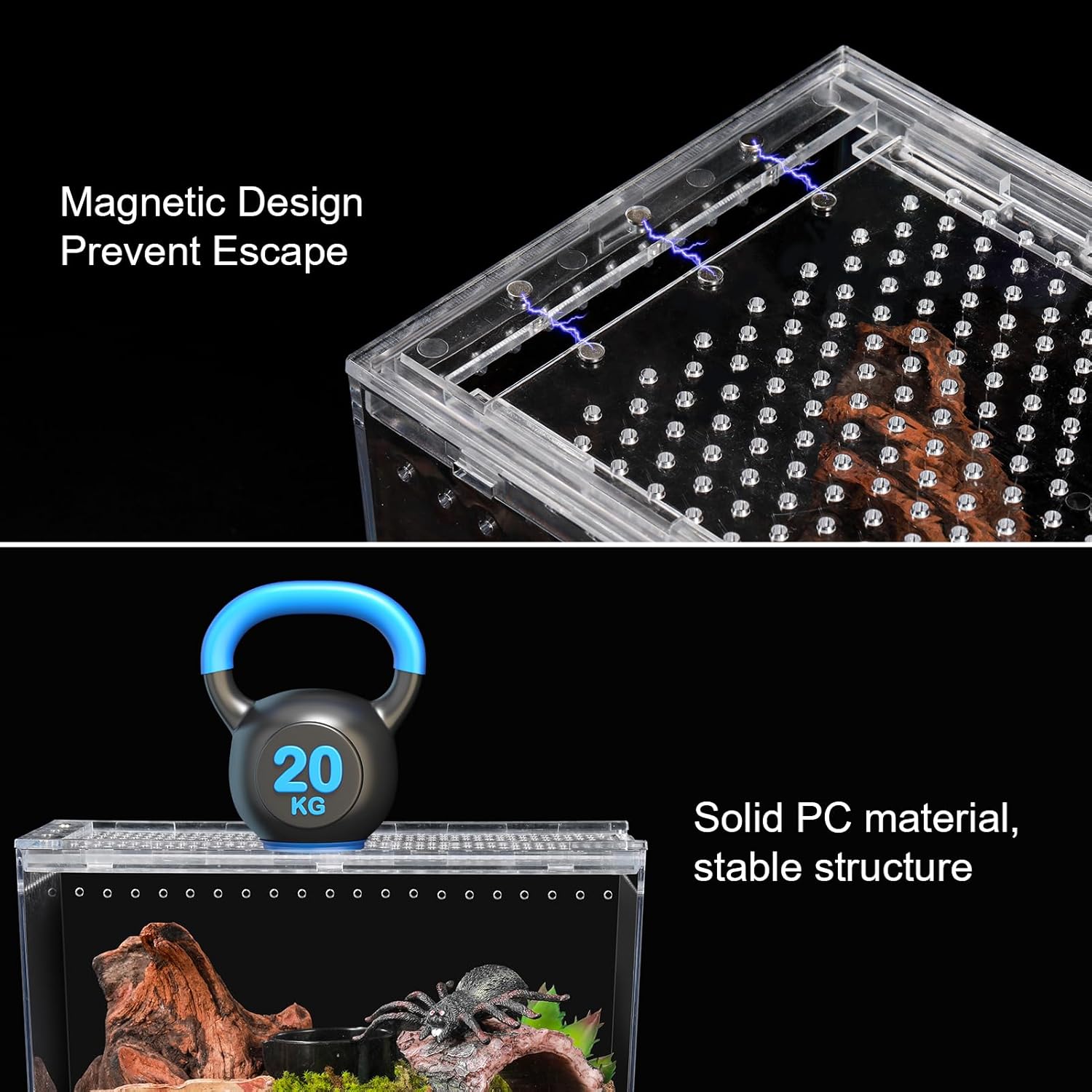 - Better than Acrylic: Our PC material is stronger and more durable than acrylic. The PC material has high strength and impact resistance, providing a safe environment for your reptiles, and excellent light transmittance can provide you with a clear view.