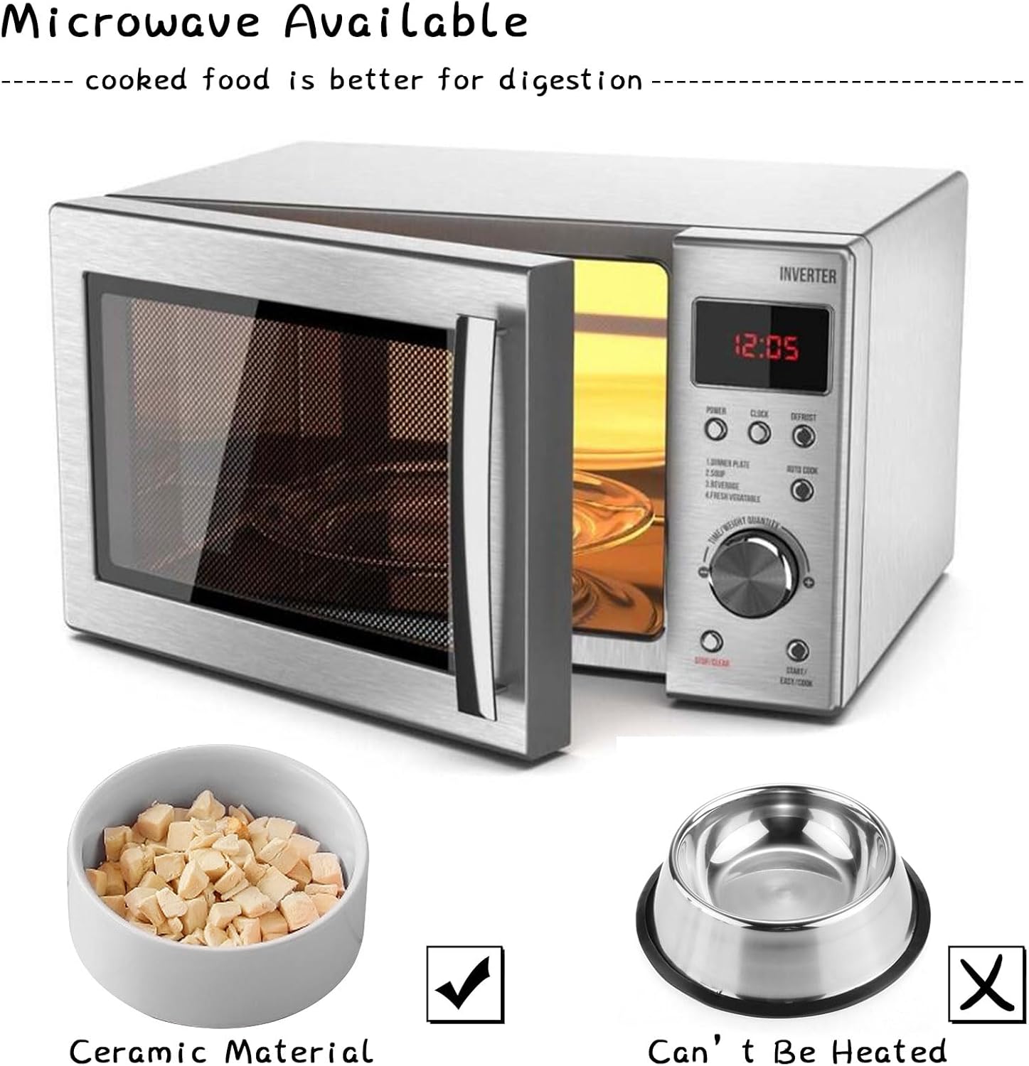 - Easy to Clean and Microwave Safe Ceramic Material - Cute ceramic dogs cats bowl with WOOD STAND design matches the home decorations. Ceramic bowl is made of Porcelain, this size cat dog food water bowls are free of lead and cadmium. High temperature ceramic, non-toxic harmless, no smell,durable.Clean sanitation, be helpful for pet health. conveniently dishwasher Microwave safe so this ceramic food bowl can be easily cleaned. No Fuss.