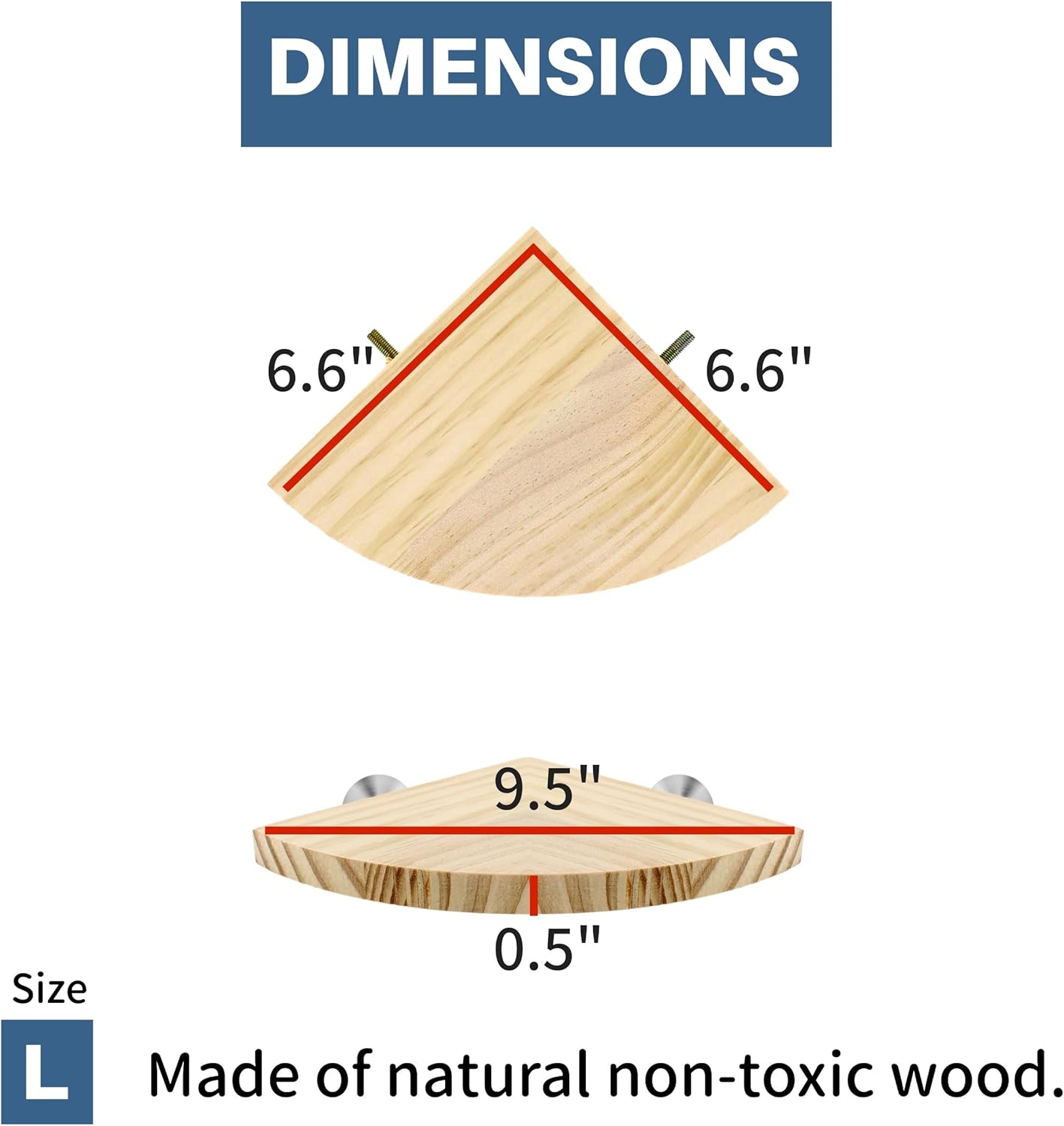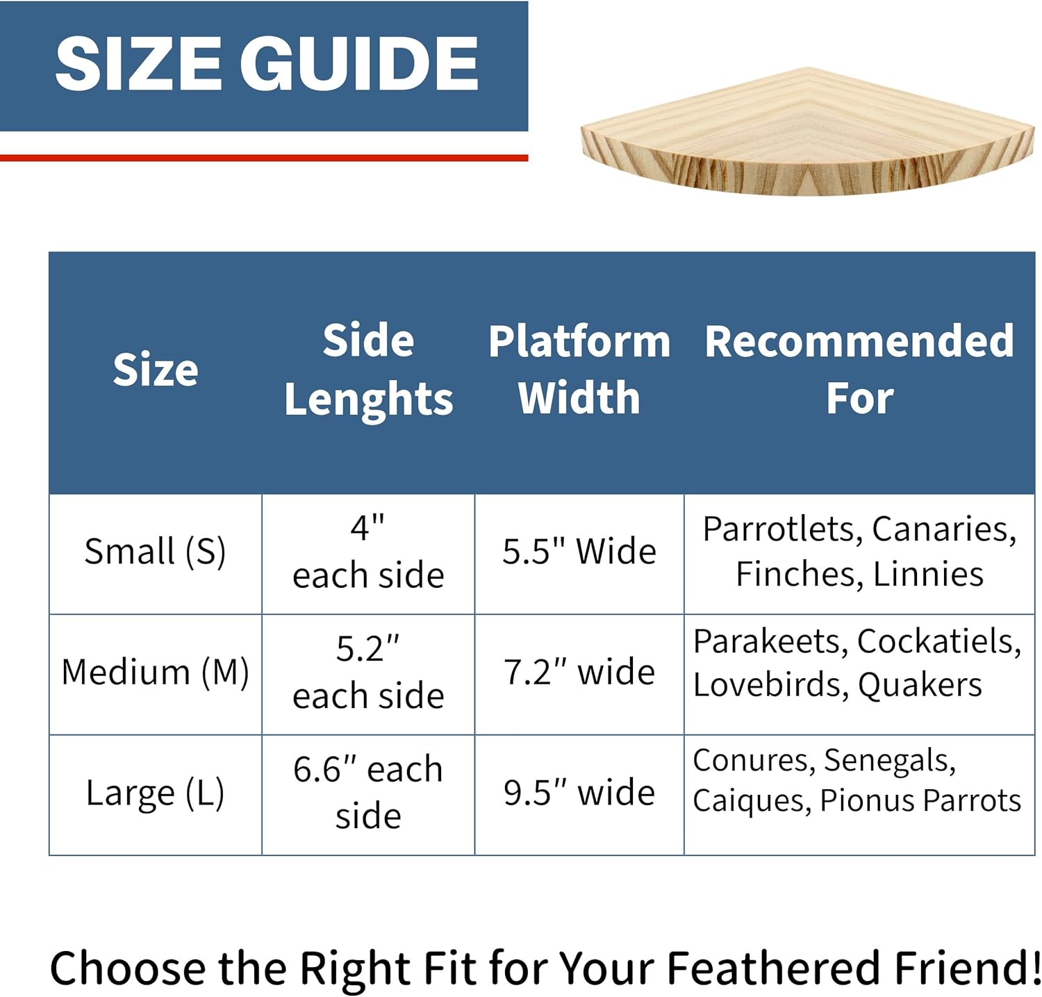 Bird Perch Corner Stand for Bird Cage Corner Platform Wood Bird Perches Corner Shelf Rest for Birds Parrots Cockatiels and Other Animal Pet Cages (Wood, Flat - Large)