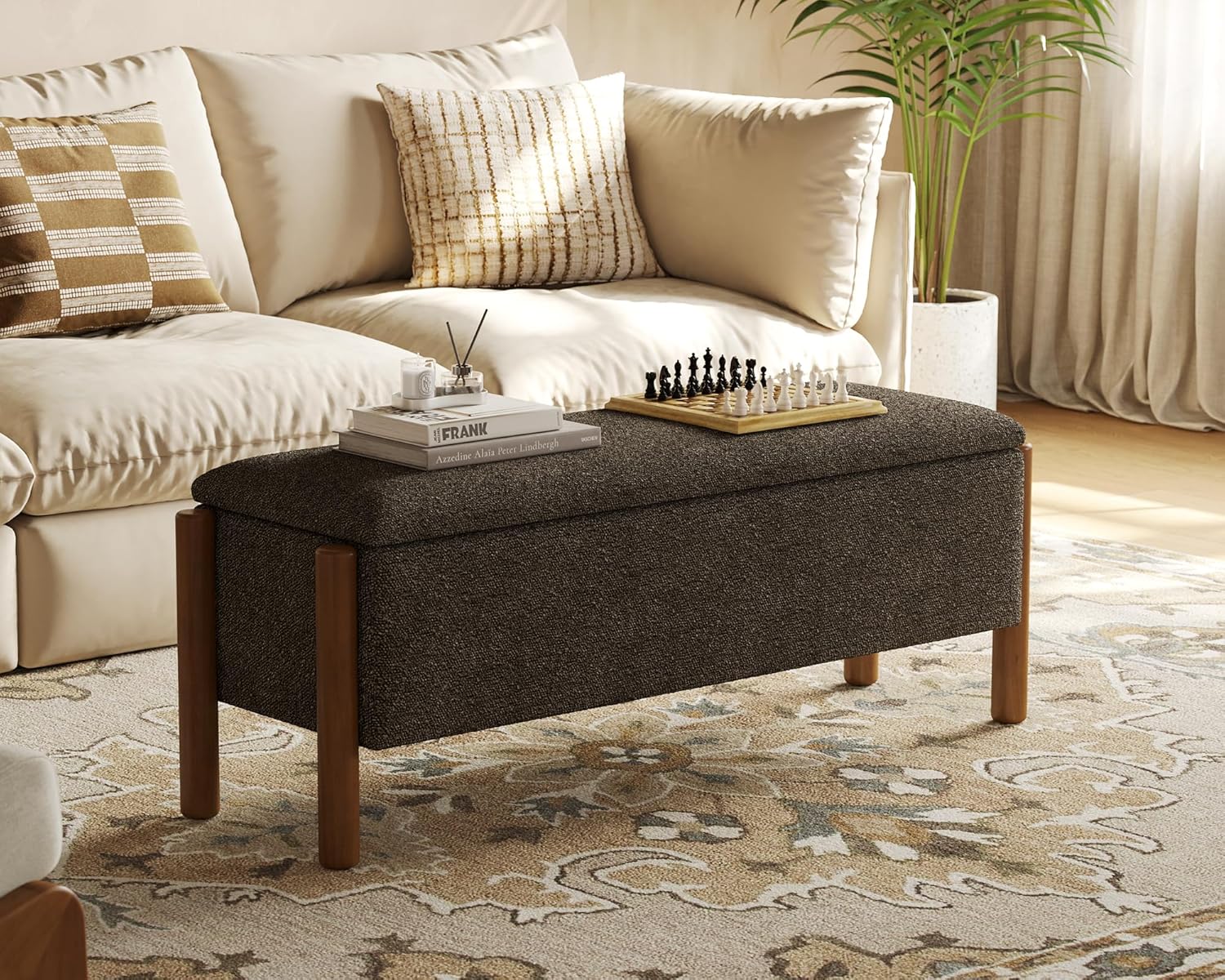 - Soft Boucle Fabric and High-Density Padding: Ottoman with storage features luxurious boucle upholstery for a soft, comfortable seat. This storage ottoman's durable fabric and high-density foam padding offer excellent support. Whether used as seating, a footrest, or an accent piece, this storage bench ensures lasting comfort. For bedroom use, it guarantees elegance and comfort. Storage ottomans with such padding are reliable and stylish additions