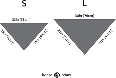 - [Triangle Size]: S=23'' x 16'' x 16''(58cm x 40cm x 40cm) Size S is suitable for dog whose neck is less than 16''. L=30'' x 21'' x 21''(76cm x 53cm x 53cm) Size L is suitable for dog whose neck is less than 23''. Please measure the neck girth of your pets before purchasing the item.
