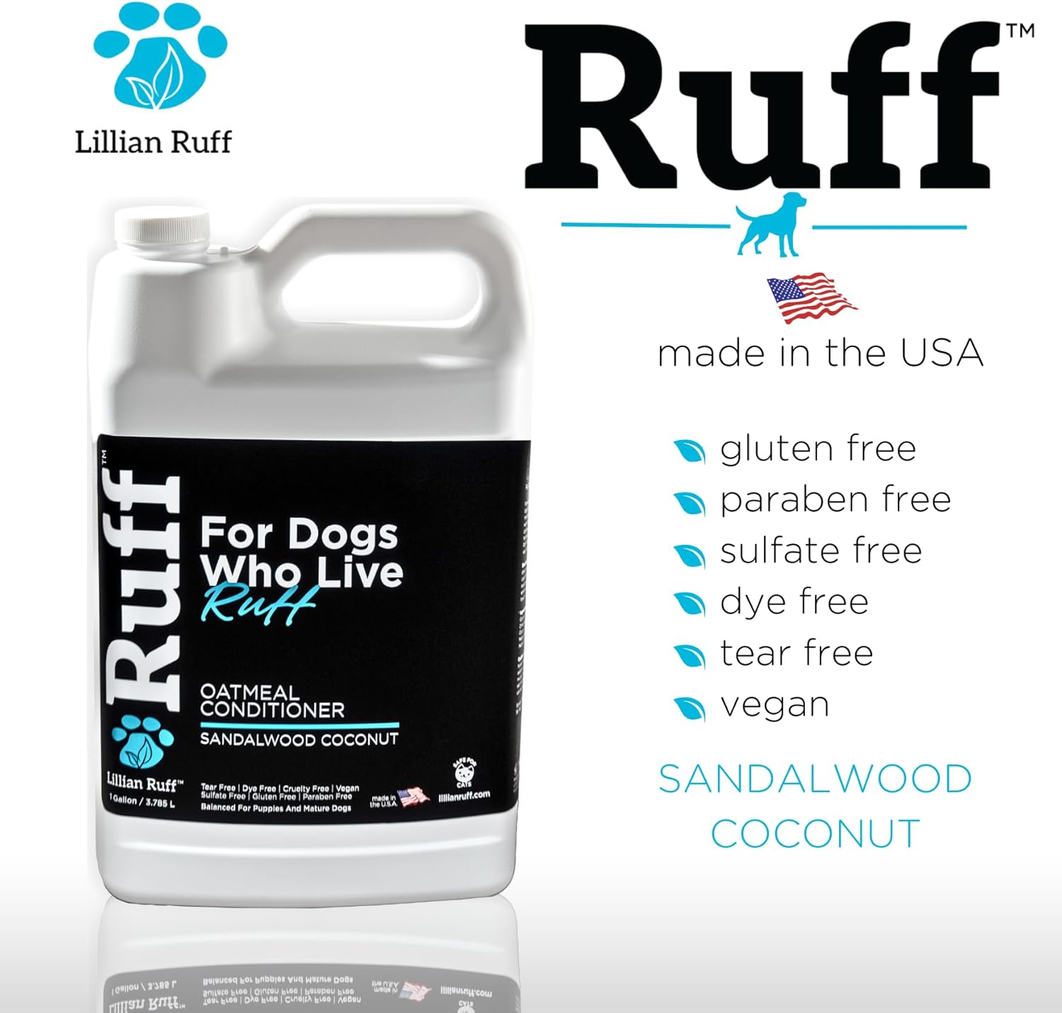 Ruff by Lillian Ruff Sandalwood Coconut Oatmeal Conditioner for Dogs – Moisturize & Soothe Dry Itchy Skin, Promote Healthy Coat, Tear-Free, Sulfate-Free, Paraben-Free, Made in USA (Gallon with Pump)