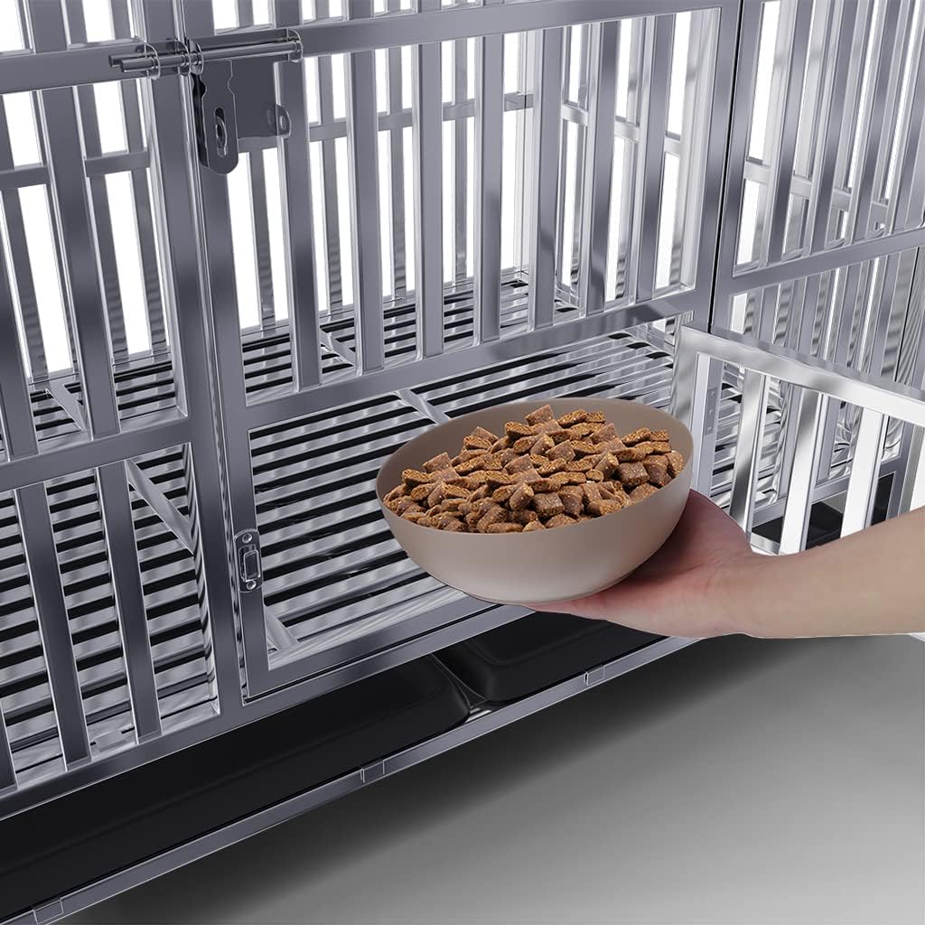 - 【Versatile】This stainless steel dog cage is available in 30", 37", 42", and 48" sizes, suitable for dogs of various breeds and sizes.