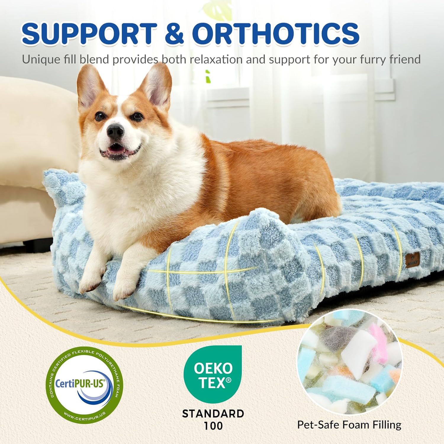 - All-round Safety: The dog bed fabric is OEKO certified, so you don't have to worry about your pet licking it. The bottom of the pet sofa has a non-slip design, which is stable even on hardwood or tile floors, allowing your cat to get on and off safely