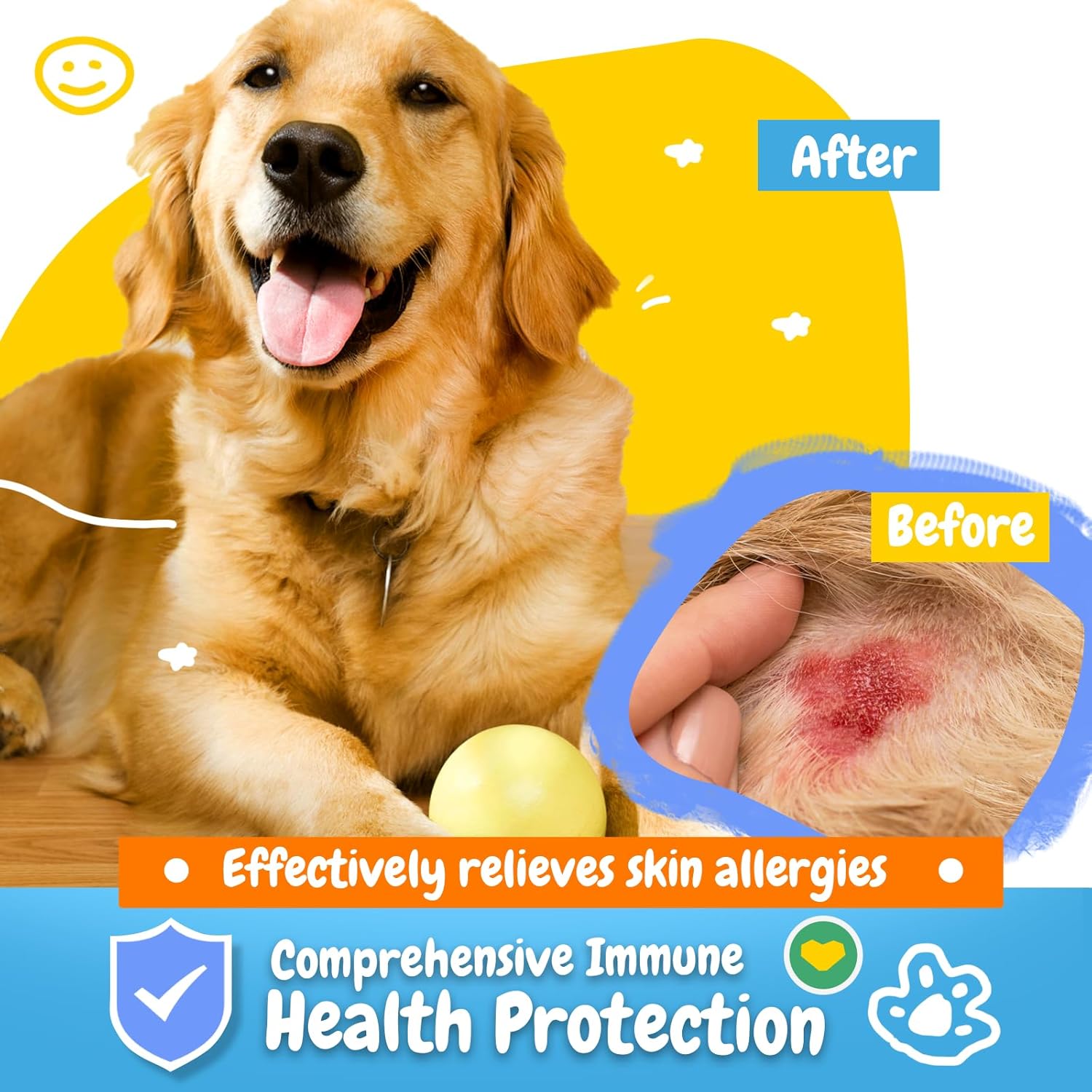 - All-in-One Solution for Allergy & Skin Health: Relieve your pet’s allergy symptoms, from itchy skin to paw licking, with a multifunctional formula that tackles seasonal allergies, supports skin and coat health, and promotes overall comfort using ingredients like Turmeric, Apple Cider Vinegar, and Hemp Seed. These natural ingredients help maintain your pet’s comfort year-round, suitable for dogs of all ages.