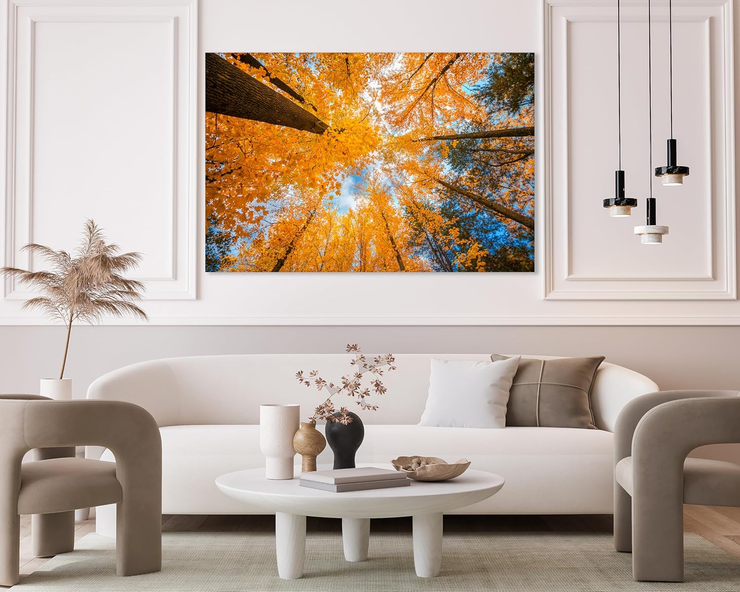 Nature Wall Art Prints - Ocean Forest Mountain Lake Canvas Landscapes - Small to Extra Large Living Room Bedroom Kitchen Bathroom Décor (Blue Sky Through Yellow Autumn Trees, 31L" x 47W")