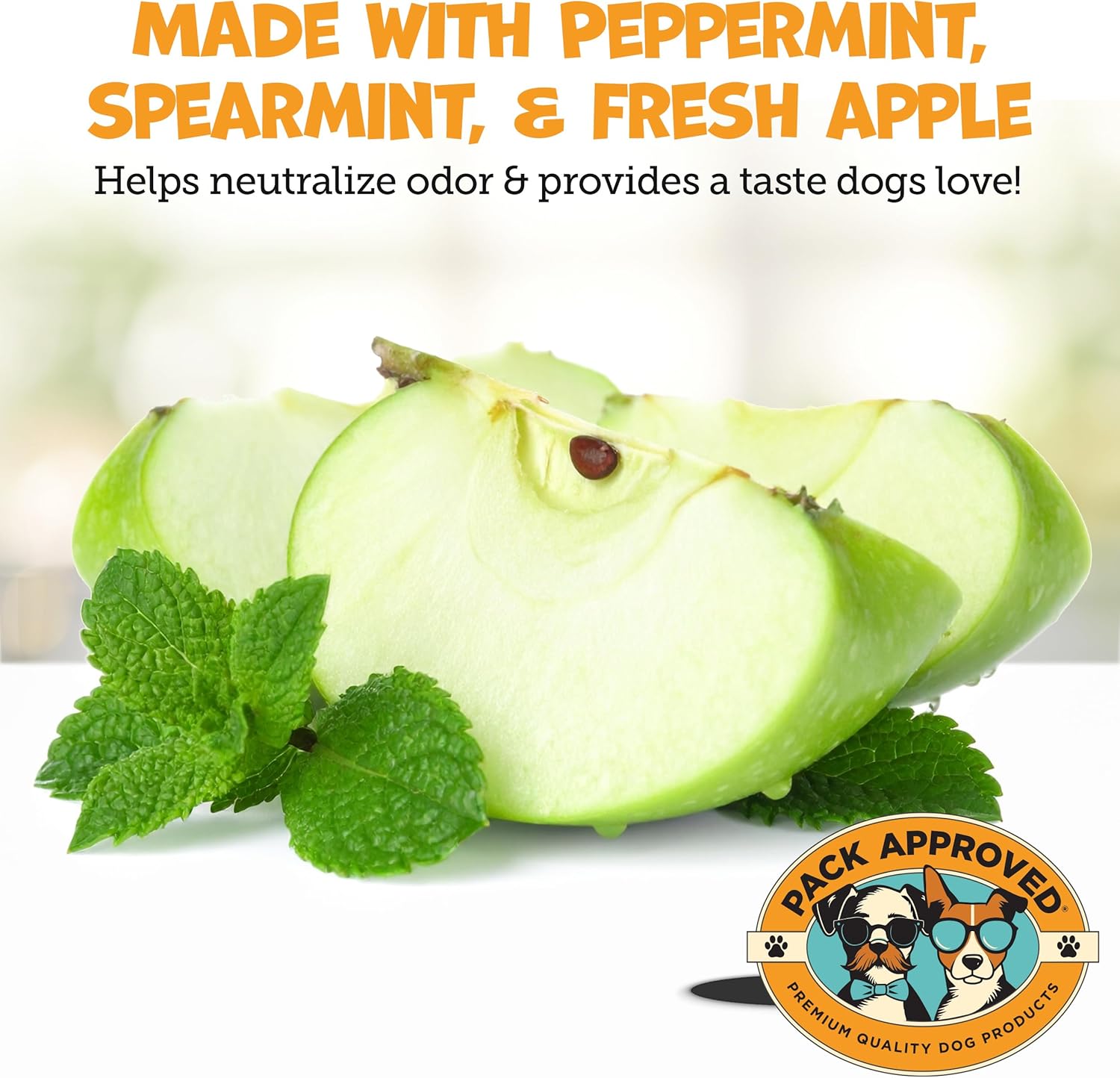 - No More Dog Breath: Our Fresh Apple and Mint-scented dog dental wipes keep your dog’s breath fresh and clean. These easy-to-use pet dental wipes support daily oral hygiene for a healthier, happier pup