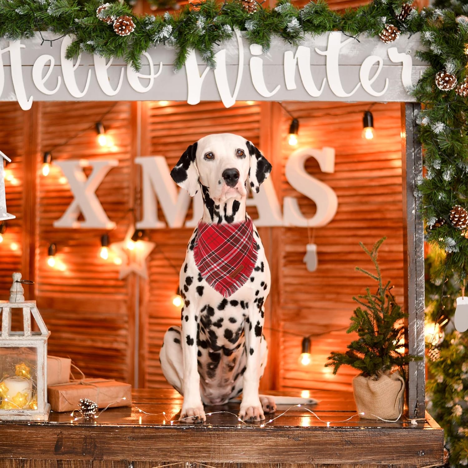 - Christmas Dog Bandanas: Classic red plaid patterns with stylish tasseled edge, Bursting with Christmas spirit, the vibrant reds and festive checks make your pup look attractive and full of holiday charm for Christmas celebrations.