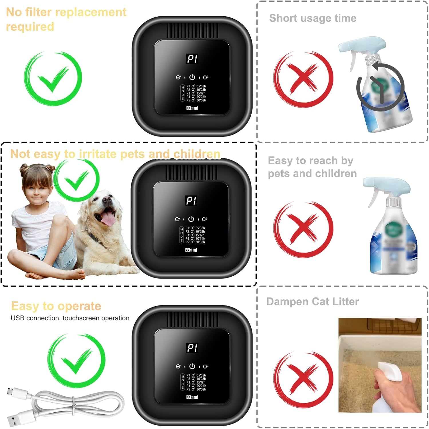 Cat Litter Deodorizer – 99% Odor Removal, Ozone Air Purifier for Pets, Strong Odor Eliminator for Litter Box, Toilet, Closet, Cabinet, Shoe, Garage, Small Room – Black