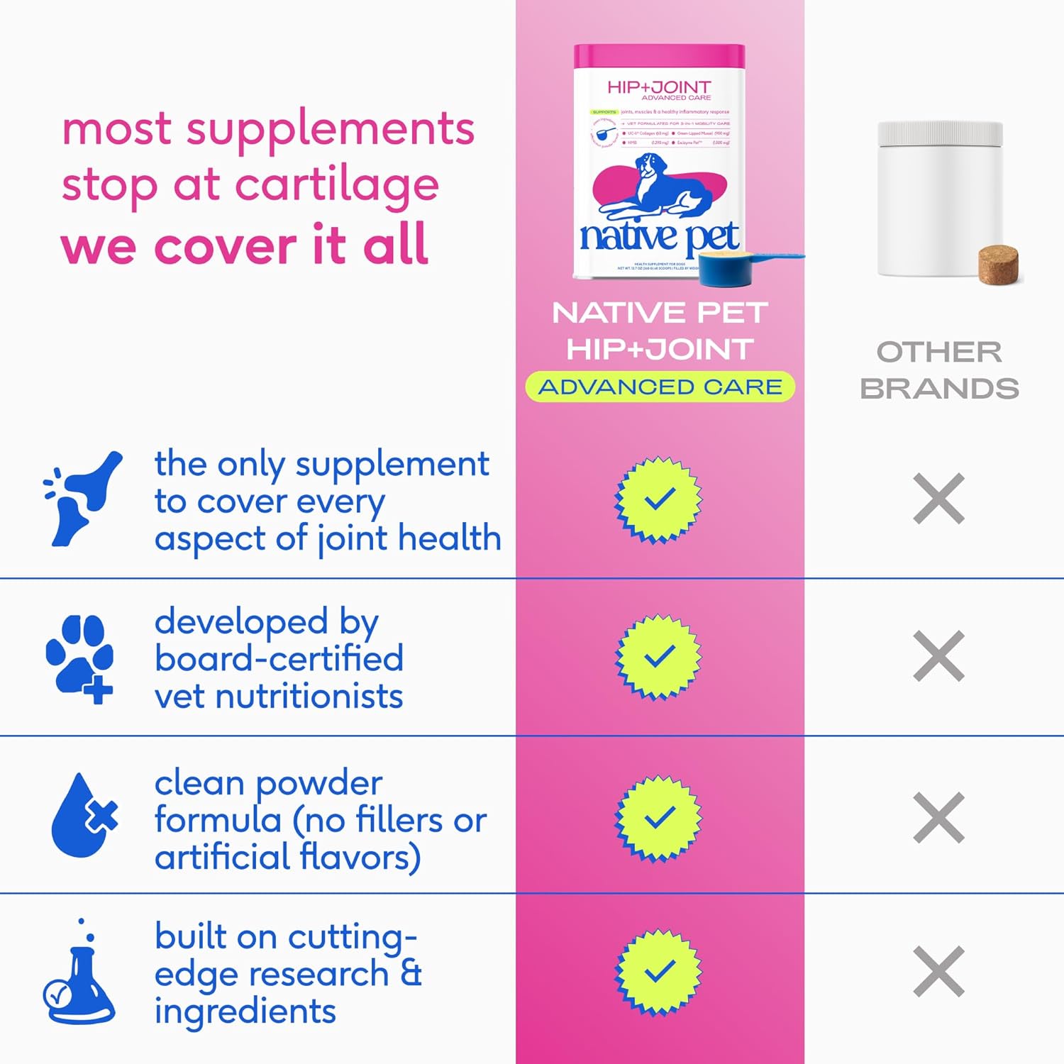 Native Pet Advanced Care - Hip & Joint Supplement for Dogs - Supports Joints, Cartilage, Muscles & Anti-Inflammatory with HMB, UC-II Collagen, Green Lipped Mussel & Hyaluronic Acid - 30 Scoops